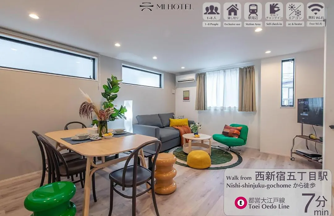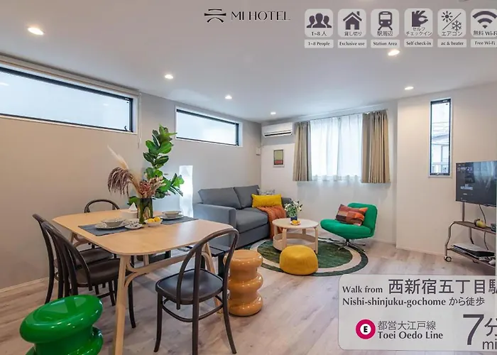 The property offers a balcony and a dressing area, as well as comforts like climate control. At Mi-Villa Shibuya Honmachi, guests will enjoy the convenience of a hair dryer, shower caps, and bath sheets in the bathroom. Furthermore, a separate toilet and a shower is available.